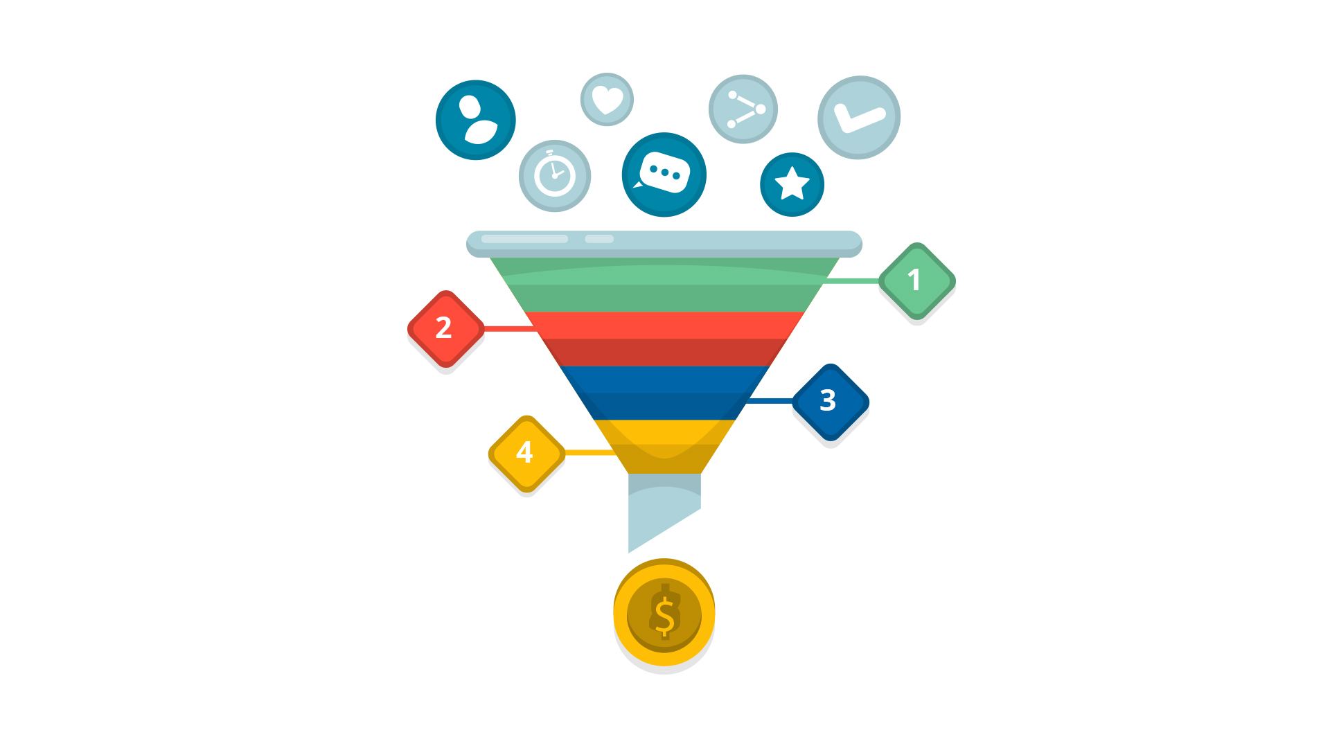 Podstawowym etapem lejka jest zdobycie uwagi. Bez niego nie można przystąpić do kolejnych etapów, dlatego niezwykle ważna jest odpowiednia reklama i kampania marketingowa. Następnym etapem jest zainteresowanie. Chodzi w nim o zbudowanie zainteresowania ofertą firmy u potencjalnych klientów. Następnie przy dobrych wiatrach można doprowadzić do przejścia do etapu pożądania, po którym następuje akcja, czyli wezwanie do podjęcia decyzji zakupowej. Jeśli wszystko pójdzie zgodnie z planem, firma może liczyć na ostatni etap, czyli lojalność klienta.